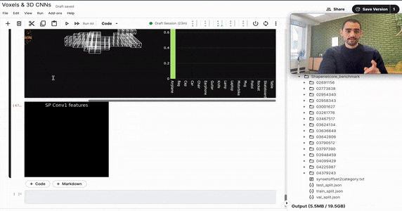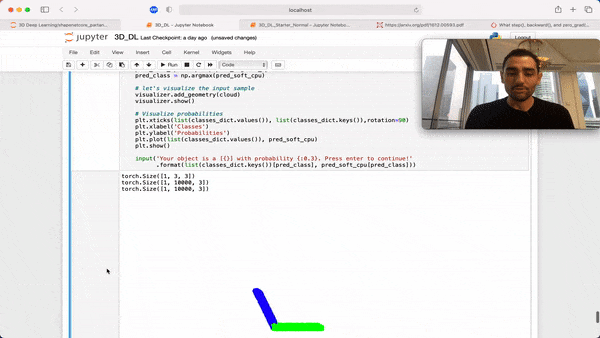 The first version helped understand the simplest possible way to build a Point Cloud classifier... and then the course received updates, got more advanced, included volumetric techniques, sparse convolutions, 3D segmentation, 3D Object Detection, and doing way more than just answering this one question...
