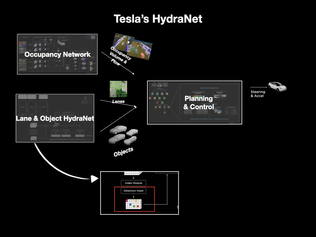 Take, for example, Tesla's HydraNet, and notice how the object detection head is just plugged here in the middle of a larger network, which is itself part of a larger End-To-End network.