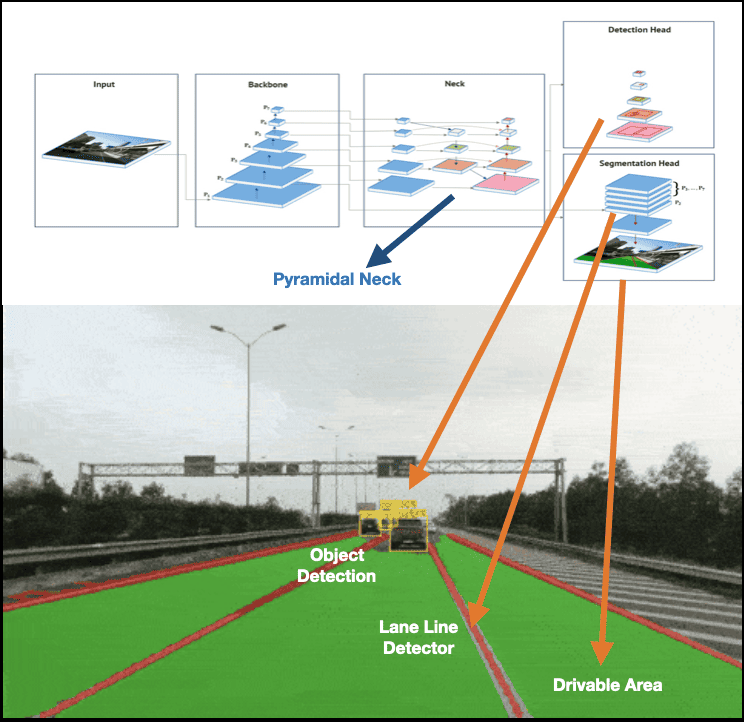 A Deep Dive into a 2022 Pyramidal HydraNet Architecture capable of detecting objects, lane lines, drivable area froma monocular image (we'll look at the architecture, but also dive into he code, and you'll try to build intuition on the type of heads it can have)