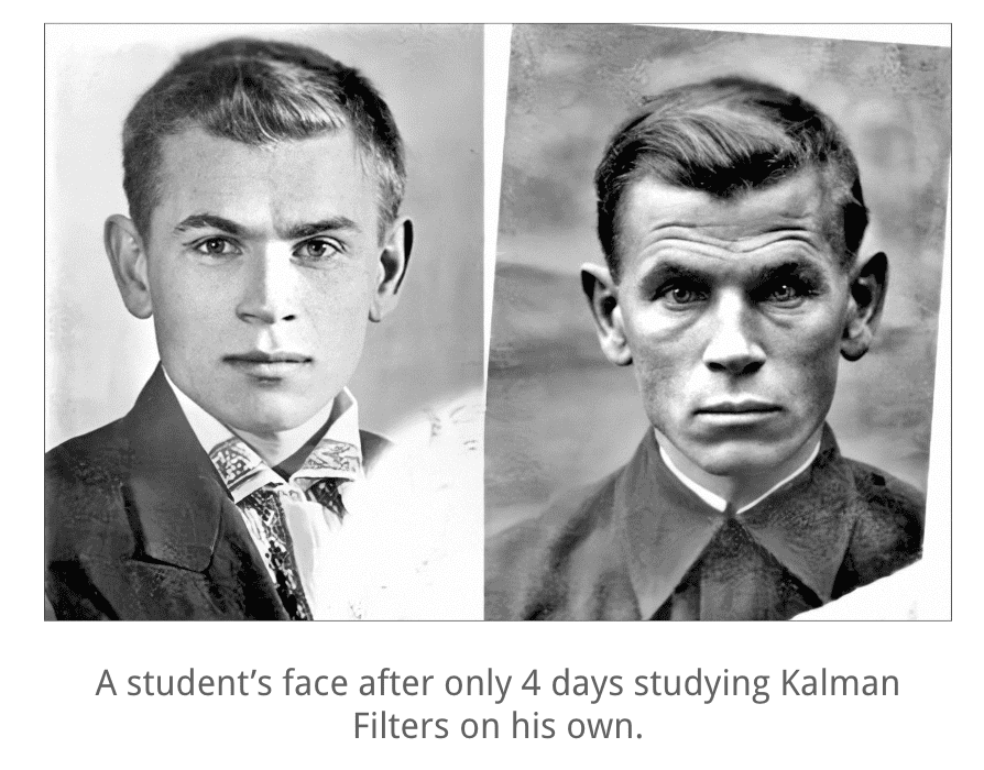 "This is a great course and it is exactly what I was looking for! To be honest I played with the code quite a few hours and could develop a really good understanding how a Kalman filter works. Thanks a lot and I hope you'll come up with another course on Particle Filters."